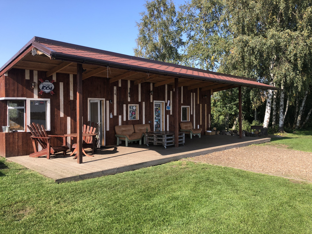 Tai tvenkinio didziausias namelis, talpina 4-6 žmones, įsikūręs tvenkinio viduryje šalia didelių senų beržų, apsodintas augmenija. Namelis turi šaldytuvą, dujinę,šildymą, viengukes ir dvigules lovas, TV, terasa ir tvarkinga swima. Namelis savaitgaliais nuomojamas tik visam savaitgaliui.